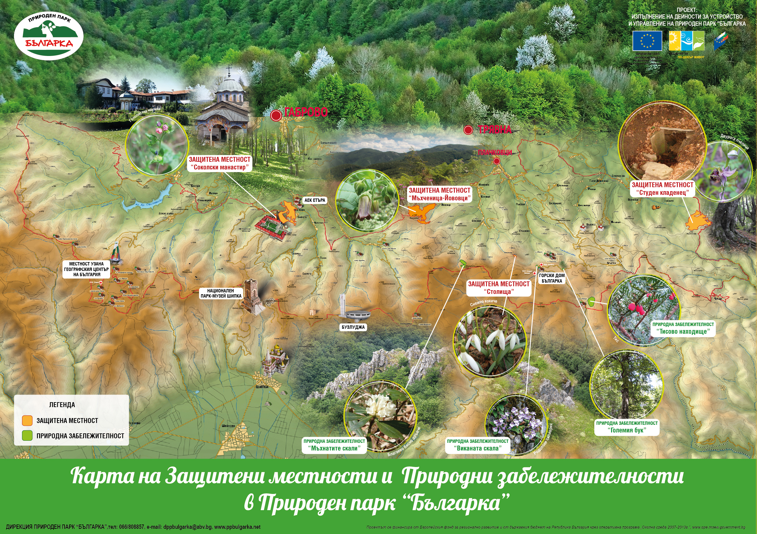 Карта на Защитени местности и Природни забележителности в Природен парк "Българка".